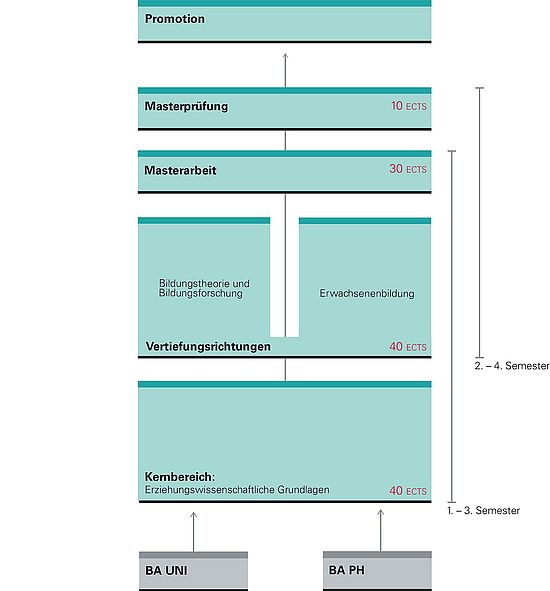 Der Master of Arts in Educational Sciences ist ein viersemestriger Studiengang im Umfang von 120 ECTS-Punkten. Er gliedert sich in einen Kernbereich von 40 ECTS-Punkten und zwei Vertiefungsrichtungen zu je 40 ECTS-Punkten sowie die Masterarbeit (30 ECTS-Punkte) und die Masterabschlussprüfung (10 ECTS-Punkte). Nach dem Studium des Kernbereichs entscheiden sich die Studierenden für eine der zwei Vertiefungsrichtungen: